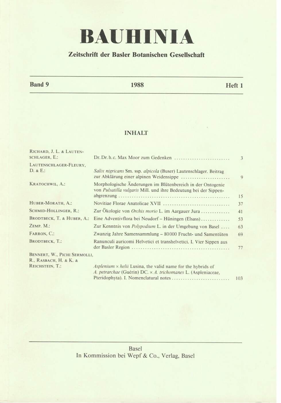 Bauhinia Bd. 3 Nr. 1