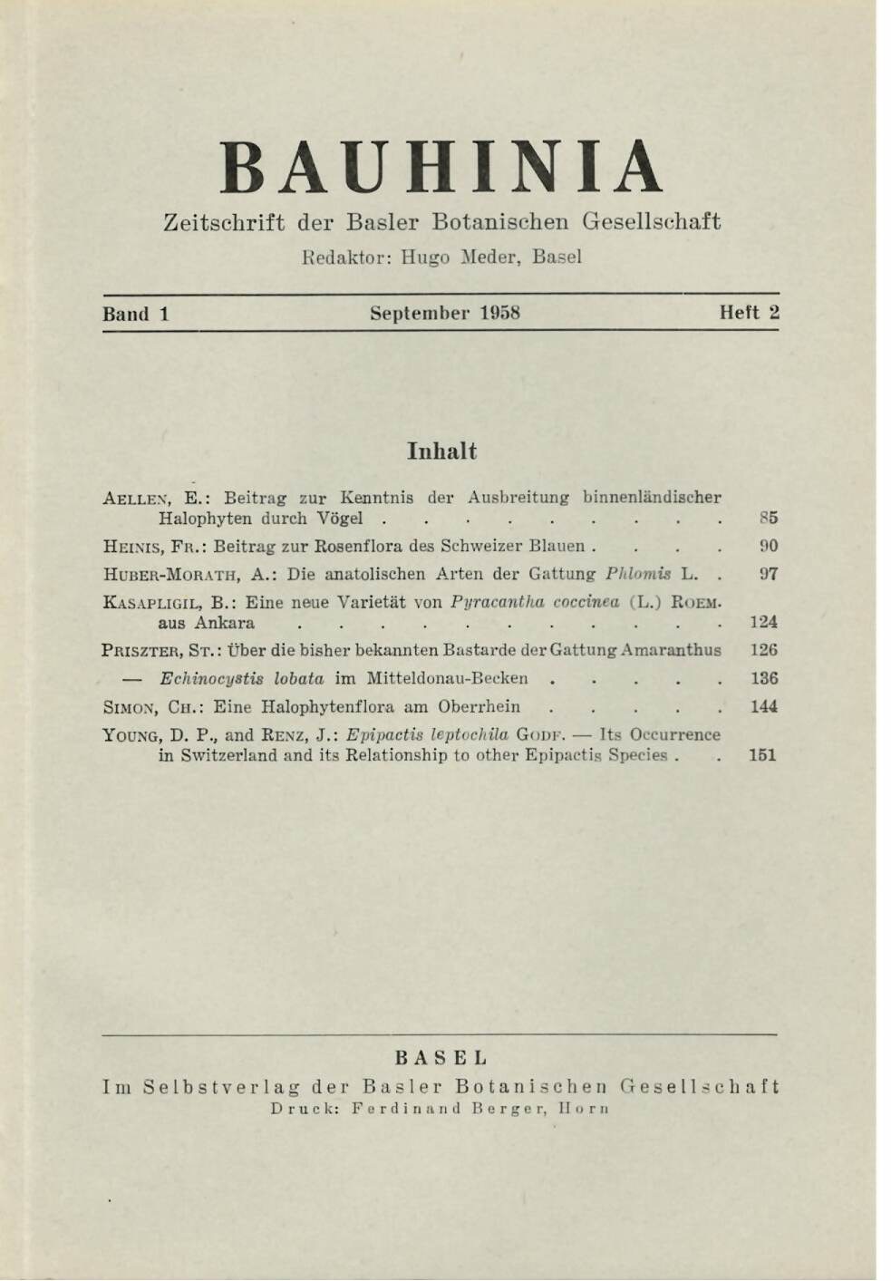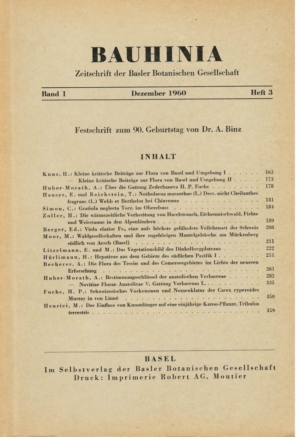 Bauhinia Bd. 0 Nr. 1 «Mitteilungen der Basler Botanischen Gesellschaft»